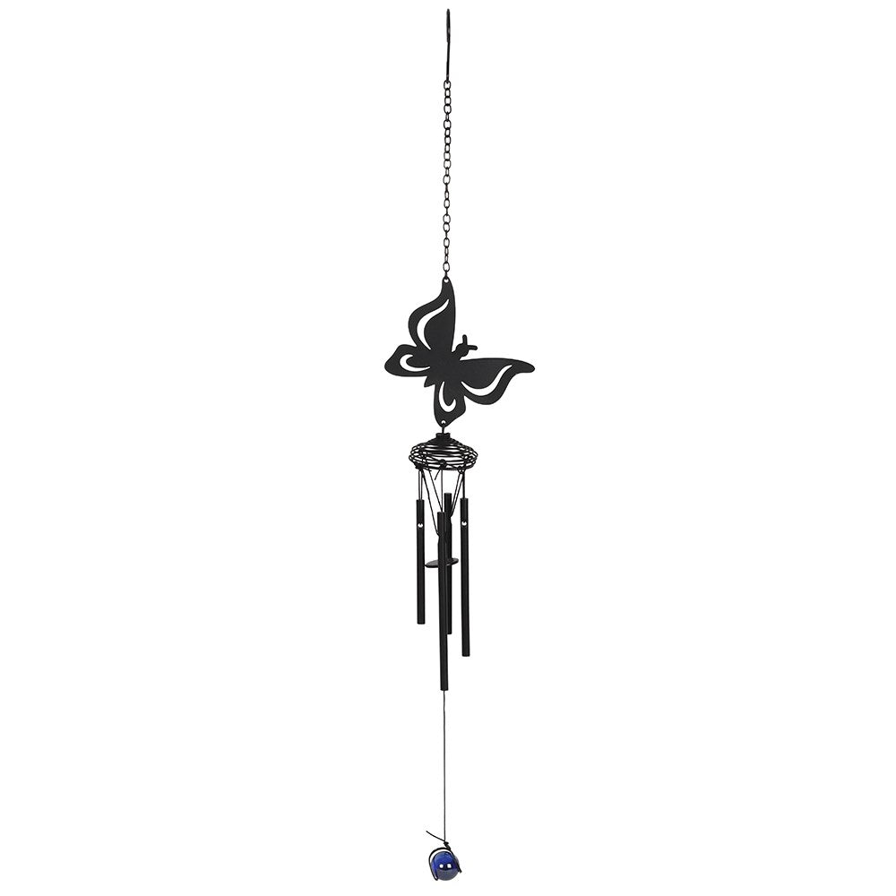These stylish metal black cut-out windchimes are perfect for adding a magical touch to your garden. Featuring a sun, butterfly, owl, moon, or dragonfly cut-out, these minimalistic designs will bring a unique appeal to any outdoor area. Perfect for adding an element of whimsical charm.