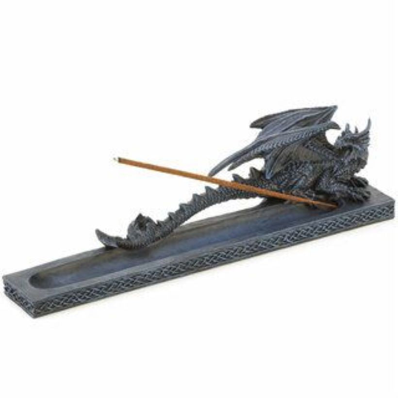 Experience the beauty of the Dragon Fire Incense Burner. Crafted of intricate detail, this dragon-shaped burner features a weathered base with a Celtic pattern running around all sides. Measuring 10.75 x 2.9 x 2.6 inches, it's perfect for adding a touch of flair to any room. **Incense not included**