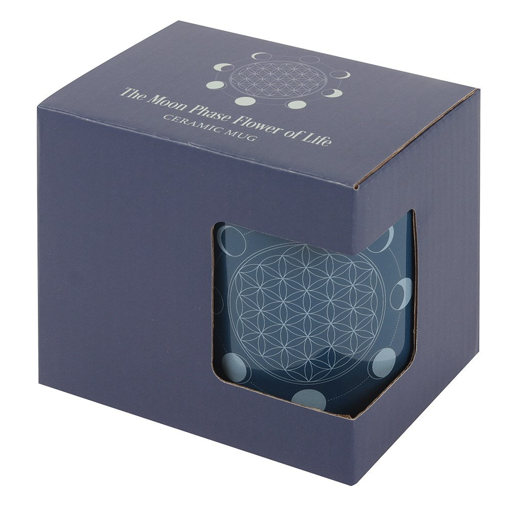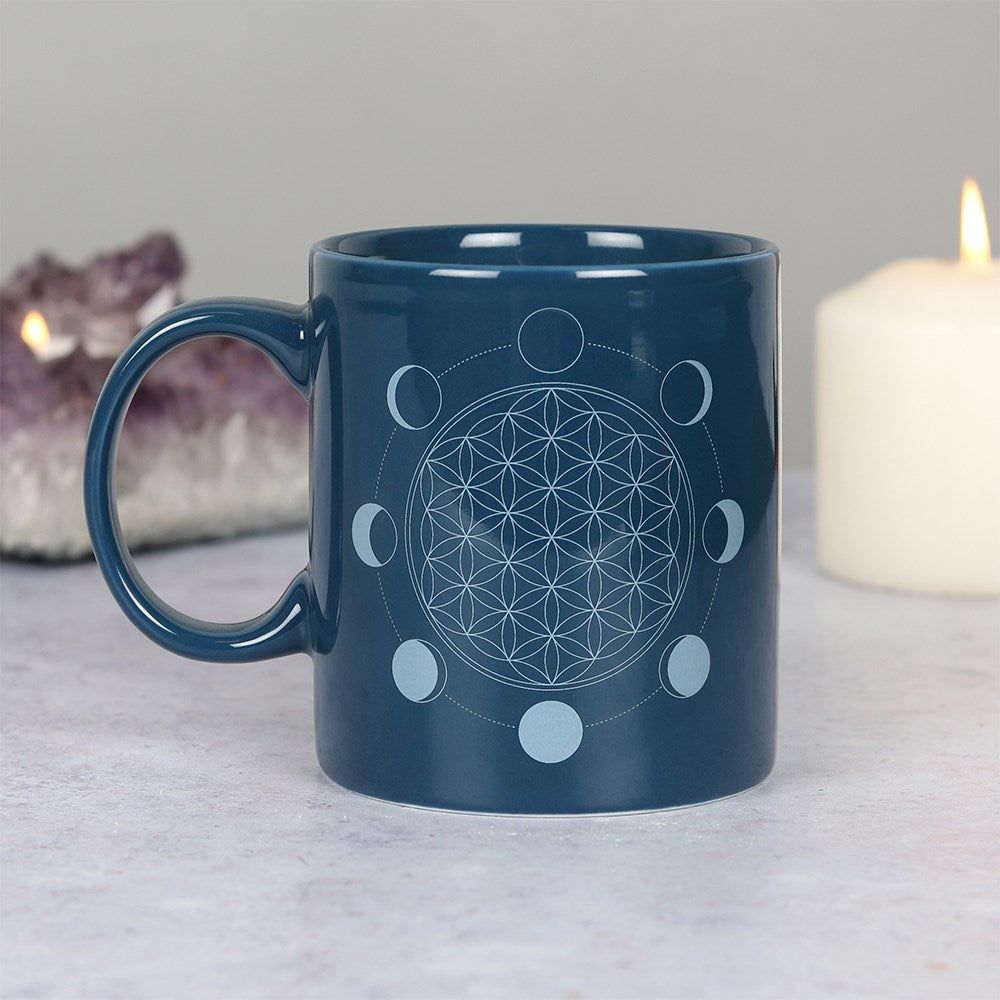 This green bone china mug features a Flower of Life design surrounded by the phases of the moon. Comes in a matching display box and makes a thoughtful gift for the spiritual, Pagan and lovers of astrology. Designed by Something Different Wholesale. Microwave and dishwasher safe.