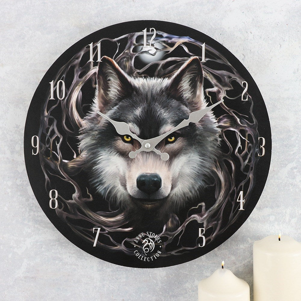 This beautiful wall clock from Anne Stokes features a stunning night forest wolf design. With its intricate details and bold colors, you can add a touch of style and charm to any room in the home. Battery operated for convenience, this clock will keep time reliably while adding to your décor.