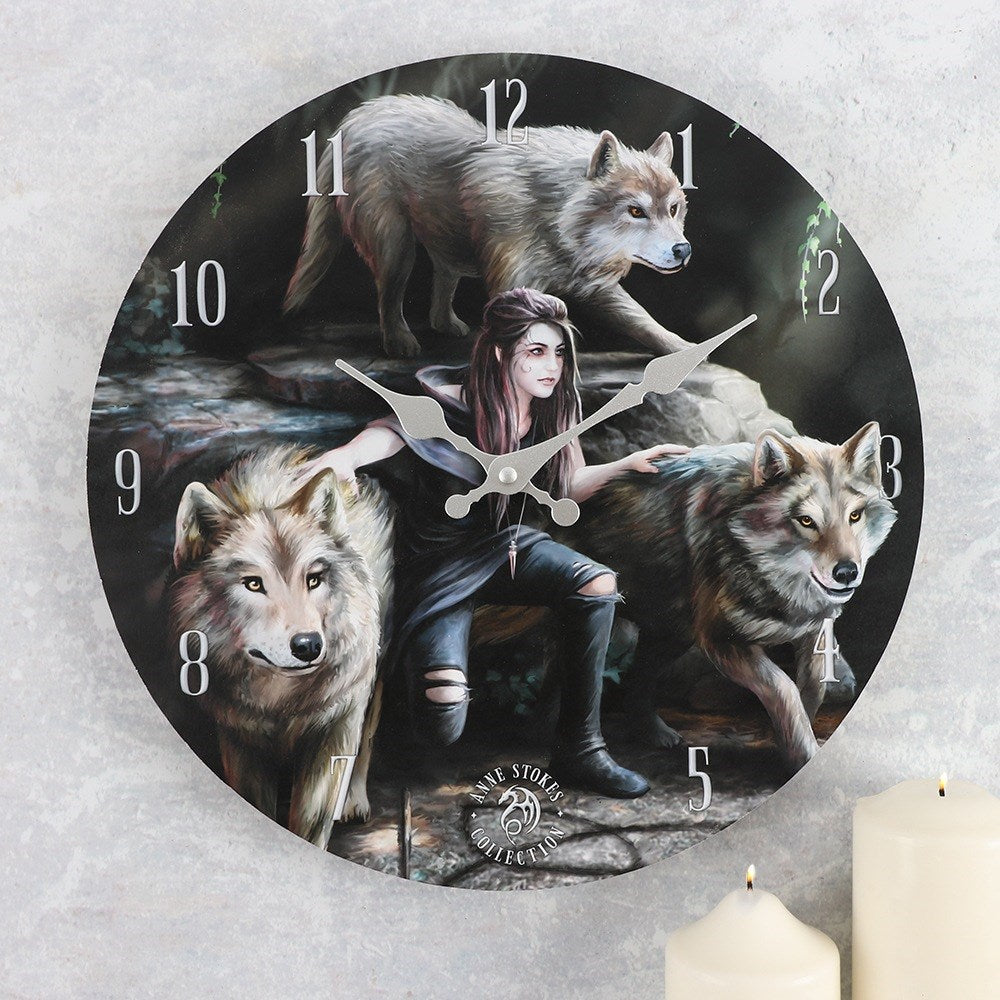 Experience the magical artwork of Anne Stokes with the Power of Three Wall Clock. This stunning design depicts a young woman with three wolves by her side, and a triquetra symbol drawn into the ground. A perfect addition to any room, the clock is a reminder of the power of the elements, and their protection and companionship.